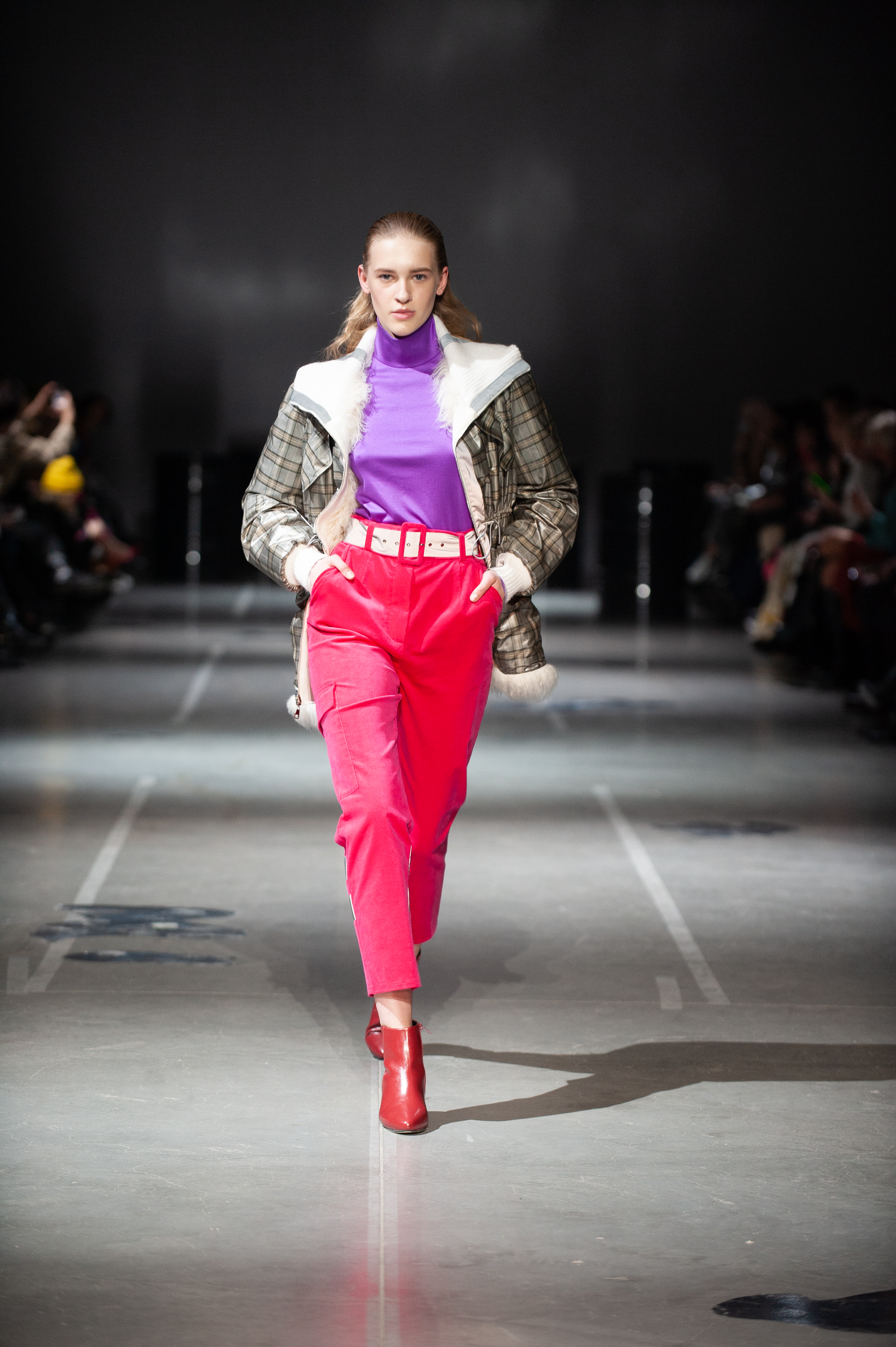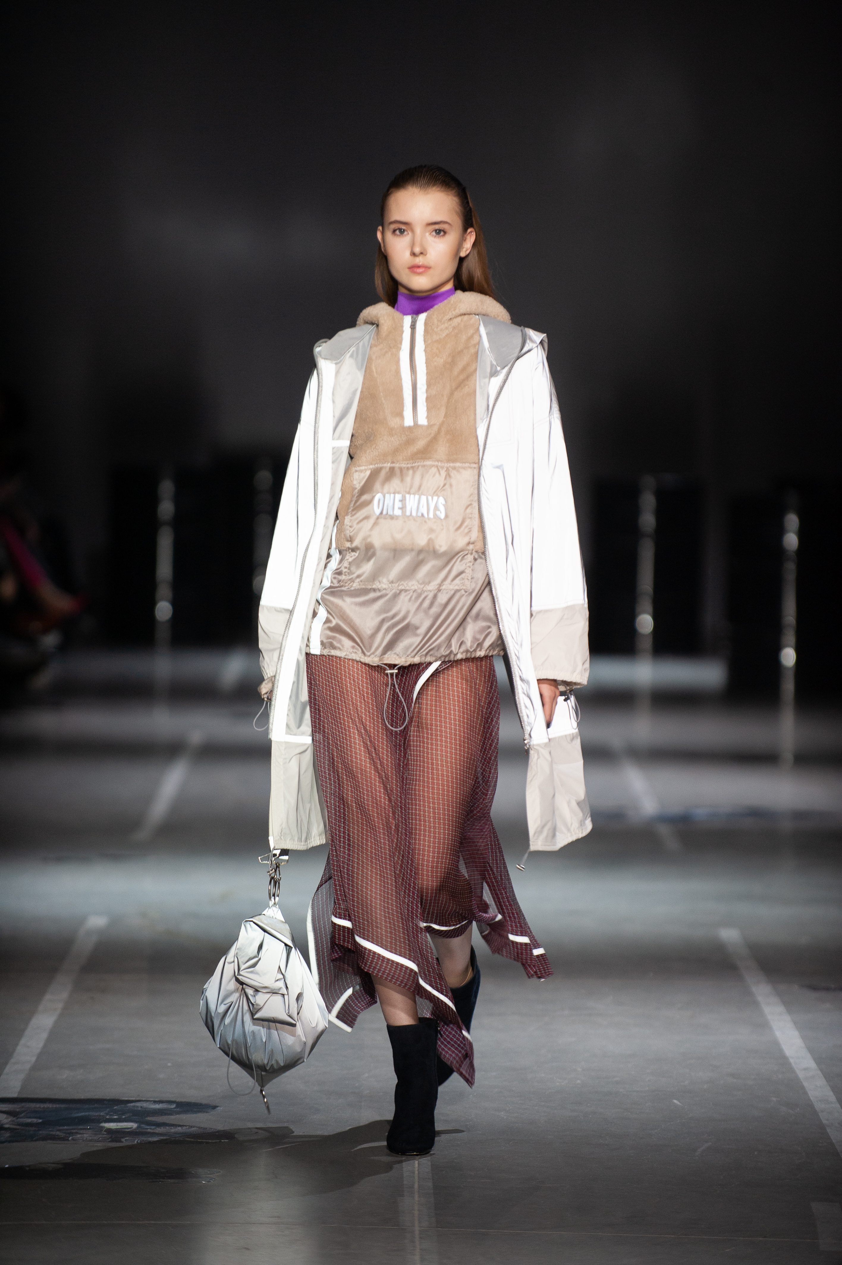 Key items: soft coats, anoraks, sweatshirts, cropped trousers (from straight culottes to flared ones with cuffs), as well as chiffon skirts and dresses. In materials, Alyona Vorozhbyt and Tatyana Zemskova rely on soft wool with mohair, boucle, combining it with chiffon, silk, artificial fur. Designers use non-standard details that emphasize the collection theme: reflective tape, leather-based metal buckles, oversize pockets and hoods.
